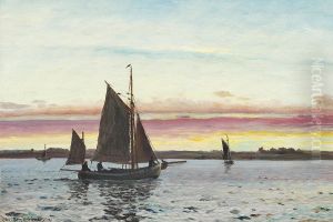 Moored Sailingvessels In A Sunlit Estuary