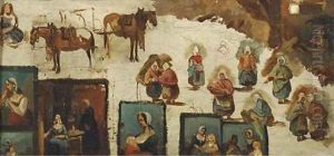 Various studies of figures and animals