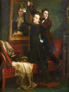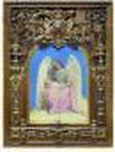 Louise Et Berthe Gallois De Naives En Prieres Devant La Vierge Representee Sous Les Traits De Leur Mere, Madame Gallois De Naives, Nee Le Camus
