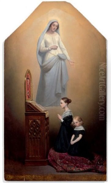 Louise Et Berthe Gallois De Naives En Prieres Devant La Vierge Representee Sous Les Traits De Leur Mere, Madame Gallois De Naives, Nee Le Camus