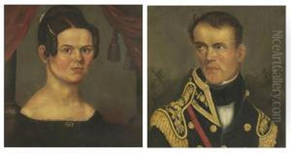 Pair Of Wedding Portraits Of Colonel Butterfield And His Wifeoctavia