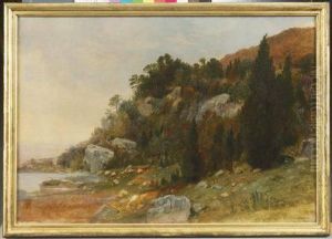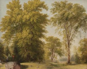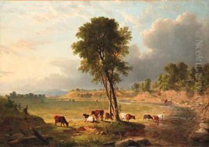 A River Landscape, 1881; Cattle Watering By A River, 1881 (a Pair)