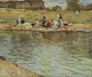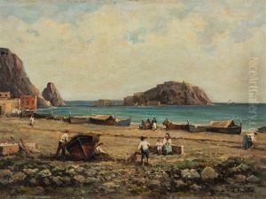 Escena De Costa Con Pescadores
