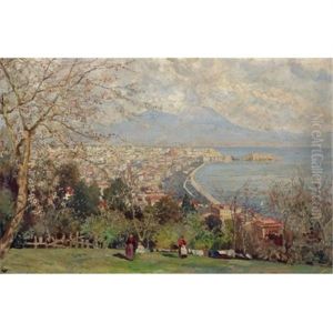 In Der Bucht Von Neapel: Blick Von Einer Anhohe Auf Die Stadt Und Den Vesuv