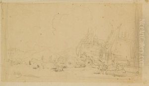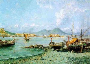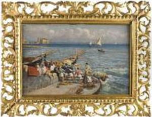 Pescatori A Mergellina Oil Painting by Attilio Pratella