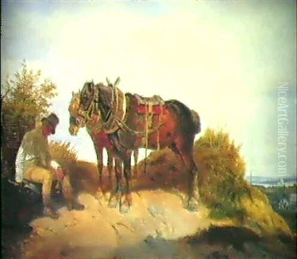 Der Treidler Und Sein Pferdegespann Bei Der Rast