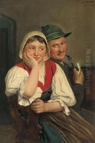 Bring the timeless beauty of August Frind's A Bavarian Courtship into your home with a handmade oil painting reproduction. Carefully recreated on canvas by skilled artists using traditional techniques, this piece captures the delicate brushwork, subtle light, and vibrant color of the original masterpiece. With museum-level quality and rich texture, it brings elegance and artistic depth to any space. Enjoy free shipping and make this masterpiece a part of your personal collection.