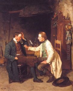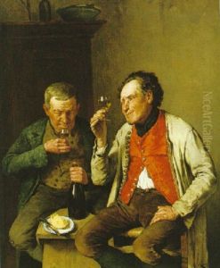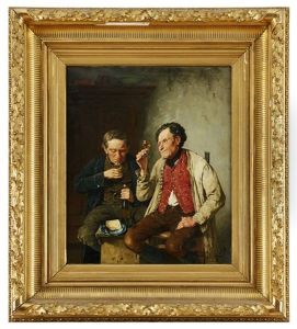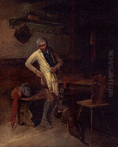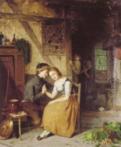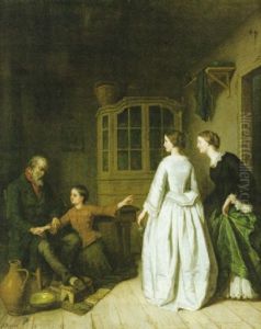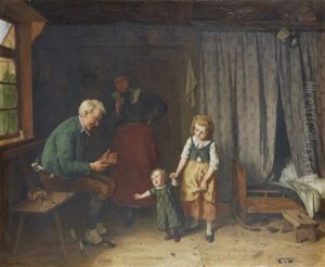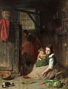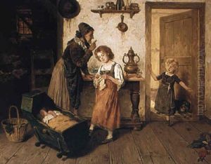 Im Bauerlichen Heim. Junge Mutter Mit Ihren Kindern Am Fenster