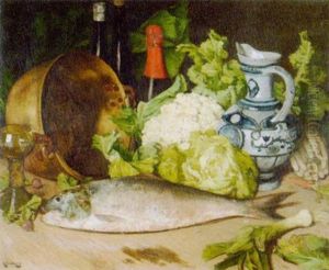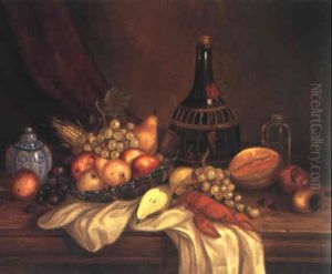 Opstilling Med Vinflaske, Hummer Og Frugter