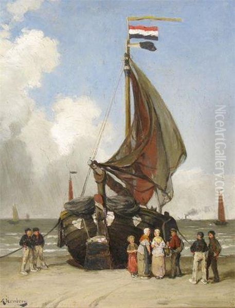Figures By A Fishing Boat On The Shore
