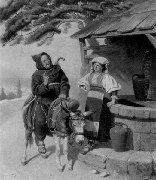 Bring the timeless beauty of August Kraus's A Discussion At The Well into your home with a handmade oil painting reproduction. Carefully recreated on canvas by skilled artists using traditional techniques, this piece captures the delicate brushwork, subtle light, and vibrant color of the original masterpiece. With museum-level quality and rich texture, it brings elegance and artistic depth to any space. Enjoy free shipping and make this masterpiece a part of your personal collection.