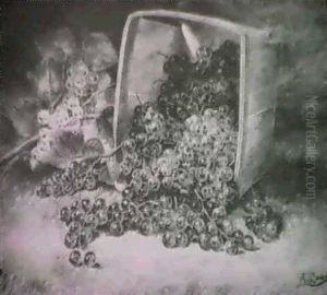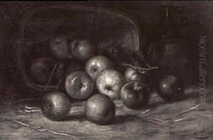 Still Life Of Peaches Spilled From A Basket