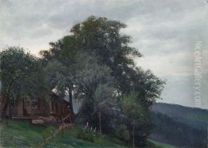 Waldige Hochgebirgslandschaft Mit Reissendem Bach Und Leuchtendem Gipfel