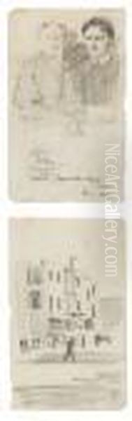 Selbstbildnis, Mit Dem Portrait Von Josef Cordier. Recto Strassenszene (neubau)