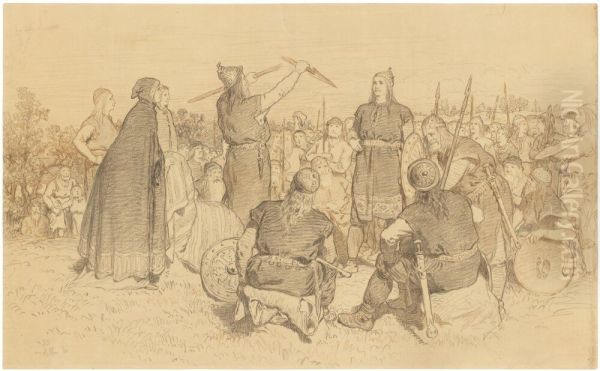 Bring the timeless beauty of August Malmstrom's Illustration. Scene from the Thing, The Saga of Ragnar Lothbrok and his Sons into your home with a handmade oil painting reproduction. Carefully recreated on canvas by skilled artists using traditional techniques, this piece captures the delicate brushwork, subtle light, and vibrant color of the original masterpiece. With museum-level quality and rich texture, it brings elegance and artistic depth to any space. Enjoy free shipping and make this masterpiece a part of your personal collection.