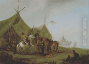 Rastende Reiter Vor Einem Zelt.