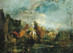 Cavaliers Dans Un Paysage Fluvial