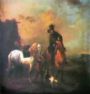 Rastende Reiter Vor Einer Schenke