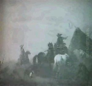 Falconers Setting Out In A Mountainous Landscape