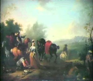 Hofische Jagdgesellschaft Vor Einem Landschloss