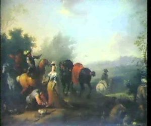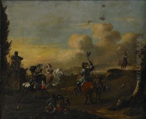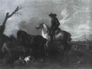 A Landscape With Falconers And Huntsmen Resting In Front Of A Villa
