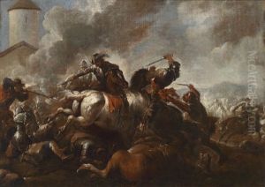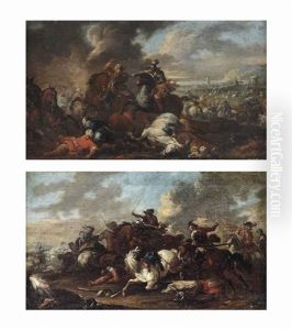 A Battle Between Knights And Ottomans And A Cavalry Skirmish (pair)