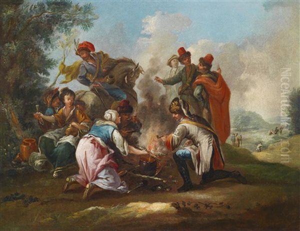 Marketenderszene Oil Painting by August Querfurt