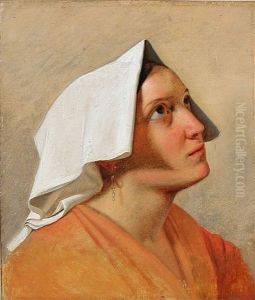 Ritratto Di Popolana Con Fiocco Rosso Tra I Capelli