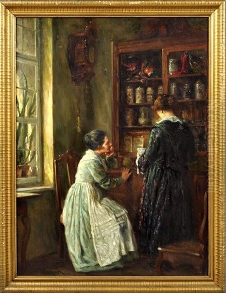Bring the timeless beauty of August Rieper's Interieur Mit Zwei Frauen Vor Geschirrschrank (erinnerungen) into your home with a handmade oil painting reproduction. Carefully recreated on canvas by skilled artists using traditional techniques, this piece captures the delicate brushwork, subtle light, and vibrant color of the original masterpiece. With museum-level quality and rich texture, it brings elegance and artistic depth to any space. Enjoy free shipping and make this masterpiece a part of your personal collection.