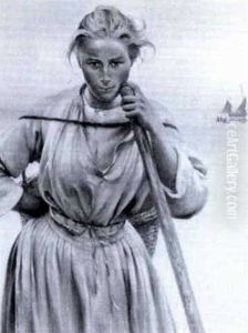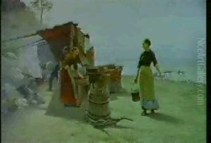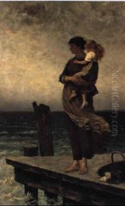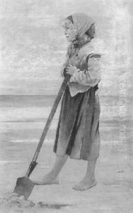 Oyster Gatherer And A Fisherman Walking Along A Britany Beach
