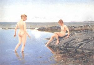 Franskt Strandlandskap Med Fiskarflicka, I Fonden Fiskebatar