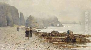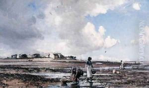 Musselplockerskor Pa Stranden Oil Painting by August Vilhelm Nikolaus Hagborg