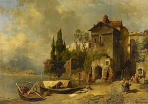August Wilhelm Leu was a German landscape painter born on September 26, 1819, in Münster, Westphalia. From a young age, Leu showed a profound interest in art and began his studies at the Düsseldorf Academy, a leading art school in Germany, where he was influenced by the Düsseldorf school of painting, a group known for its emphasis on detailed landscapes and historical subjects.