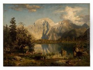 Leu specialized in the romantic depiction of nature, often inspired by the mountainous regions of Norway and the Swiss Alps, which he visited frequently. His works are characterized by their meticulous attention to detail, rich color palette, and ability to convey the grandeur and serenity of natural landscapes. Leu's paintings often feature dramatic skies, tranquil bodies of water, and lush greenery that invite viewers into the serene scenes.