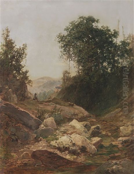 Am Gebirgsbach Oil Painting by August Wilhelm Leu