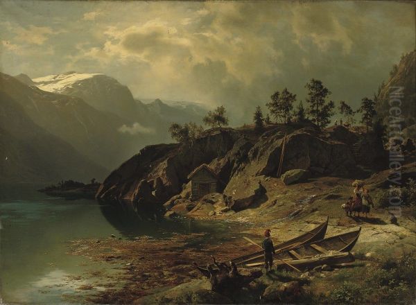 Figures Near A Mountain Lake