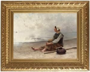 Kustmotiv Fran Bretagne Med Flicka Pa Brygga