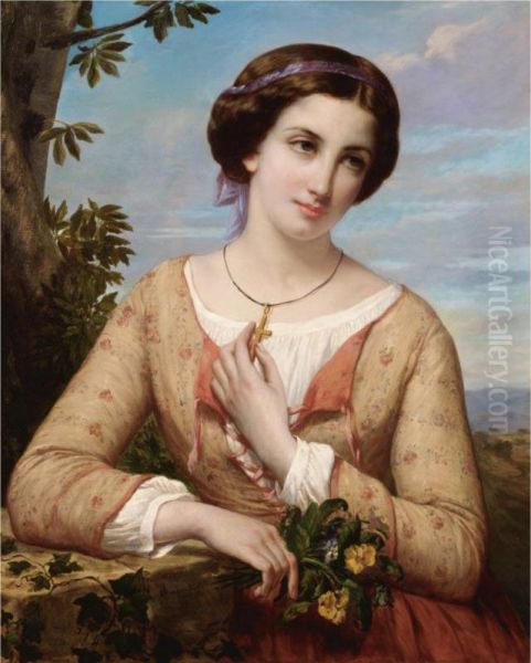 Bring the timeless beauty of Auguste Charpentier's A Young Girl With A Cross into your home with a handmade oil painting reproduction. Carefully recreated on canvas by skilled artists using traditional techniques, this piece captures the delicate brushwork, subtle light, and vibrant color of the original masterpiece. With museum-level quality and rich texture, it brings elegance and artistic depth to any space. Enjoy free shipping and make this masterpiece a part of your personal collection.