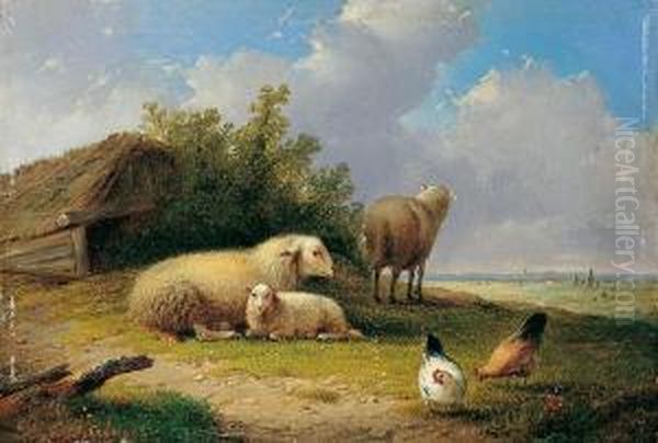 Landschaft Mit Schafen Und Huhnern
