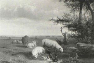 Sheep And Chickens In A Landscape