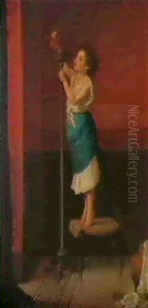 Bring the timeless beauty of Auguste Johan Frederik Carl Lorange's Interior Med En Lille Pige, Der Haelder Olio Pa En Romerks Lampe into your home with a handmade oil painting reproduction. Carefully recreated on canvas by skilled artists using traditional techniques, this piece captures the delicate brushwork, subtle light, and vibrant color of the original masterpiece. With museum-level quality and rich texture, it brings elegance and artistic depth to any space. Enjoy free shipping and make this masterpiece a part of your personal collection.