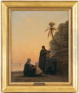 Abendliche Kamelrast Von Beduinen Bei Einem Brunnen.