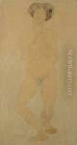 Femme Nue, Tenant Un Voile De Sa Main Droite