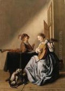 Interior With A Lady Playing Lute.