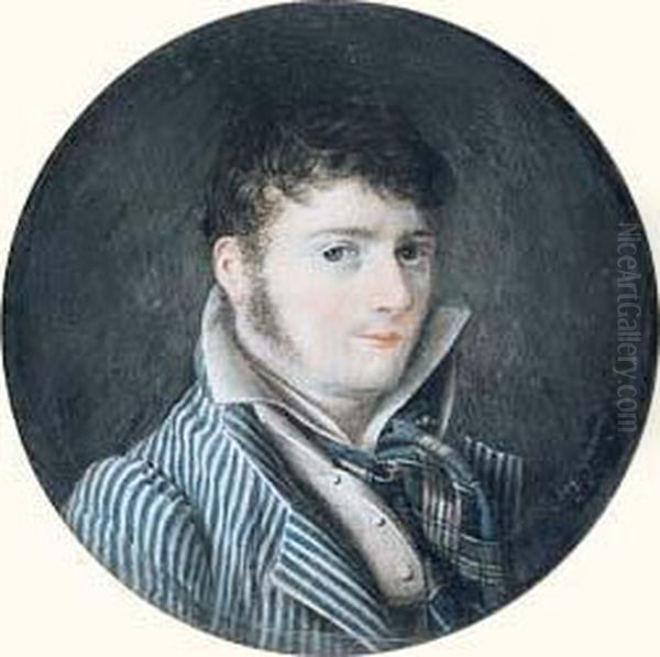 Portrait D'homme A La Redingote Rayee Bleue