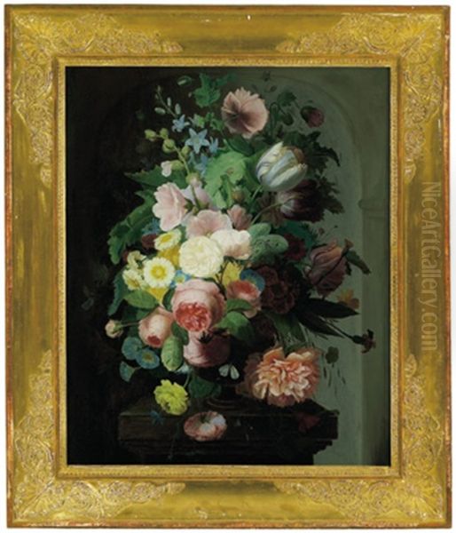 Blumenstilleben Mit Rosen, Mohnblumen, Lilien, Pfingstrosen Und Anderen Bluten