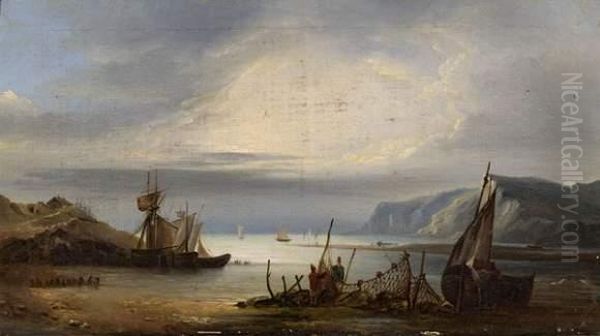 Marine Avec Pecheurs Etendant Leurs Filets.
