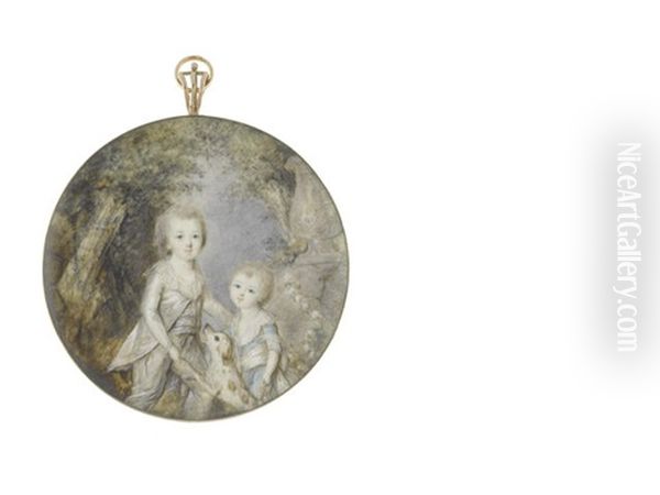 Two Boys With Their Dog, Standing Before A Landscape, A Stone Urn To Their Left: The Elder Boy, Wearing Grey Suit Over White Chemise; The Younger Boy, Wearing Blue Dress, White Sash And Chemise
