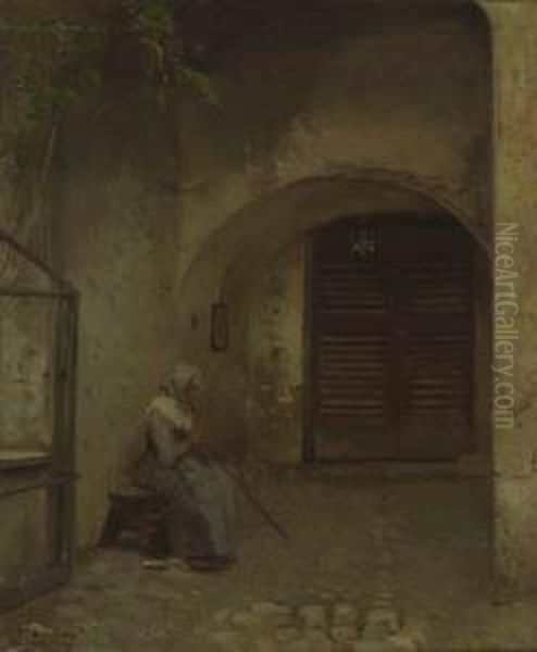 Interno Con Contadina Seduta