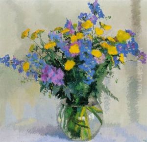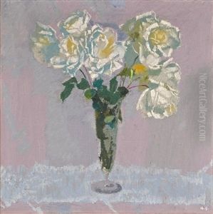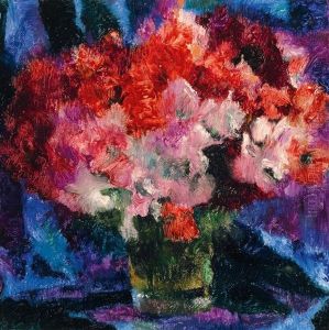 Nelken In Runder Glasvase Mit Blauem Hintergrund